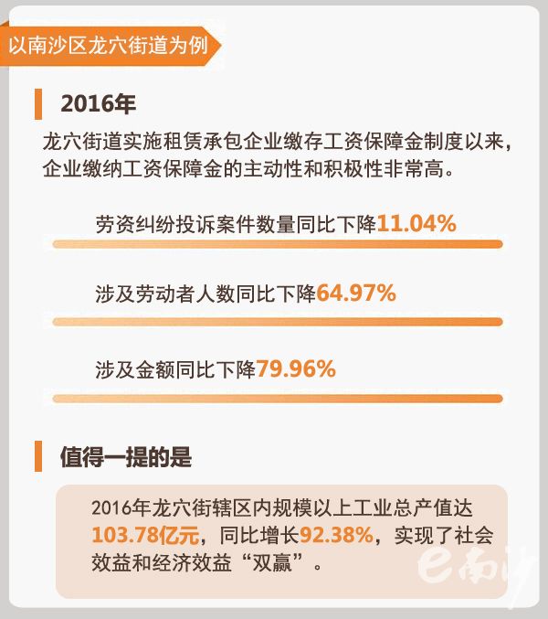 龍穴街道和轄區內租賃承包企業一致認為,工資保障金制度是和諧勞動關系的“穩壓器”,是經濟發展的“助推器”,推行工資保障金制度對南沙的開發建設有非常重要的現實意義。