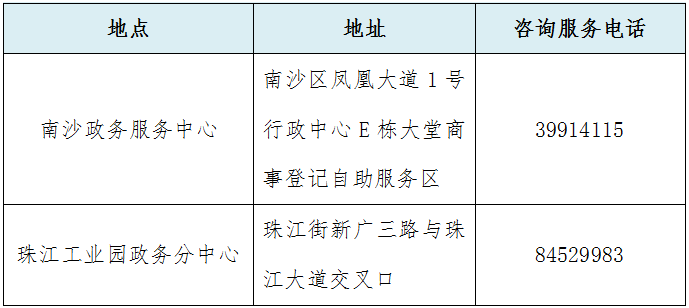 南沙全程電子化商事登記智能服務(wù)區(qū)分布表(第一批)