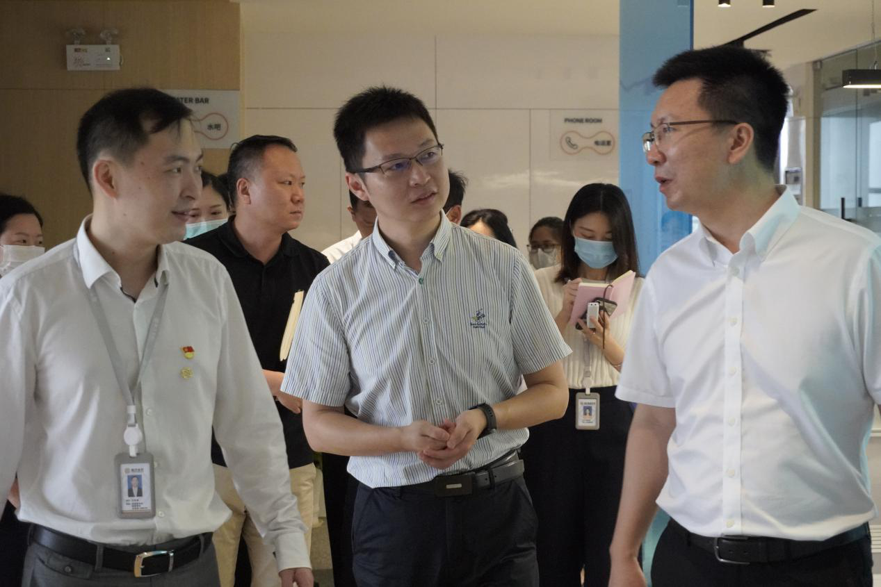 6月5日上午,共青團廣州市委員會副書記葉興仁同志帶隊到南沙金控大廈明珠金融科創中心實地調研“灣區啟夢港”南沙港澳青年創新創業總部基地(以下簡稱“港澳青創總部基地”)運營情況。共青團廣州市南沙區委員會書記宋曉冬、廣州南沙金融控股集團有限公司(以下簡稱“南沙金控集團”)副董事長、總經理莊希勤全程陪同調研。