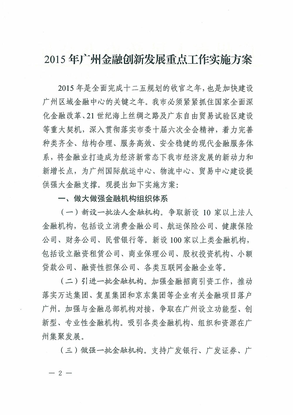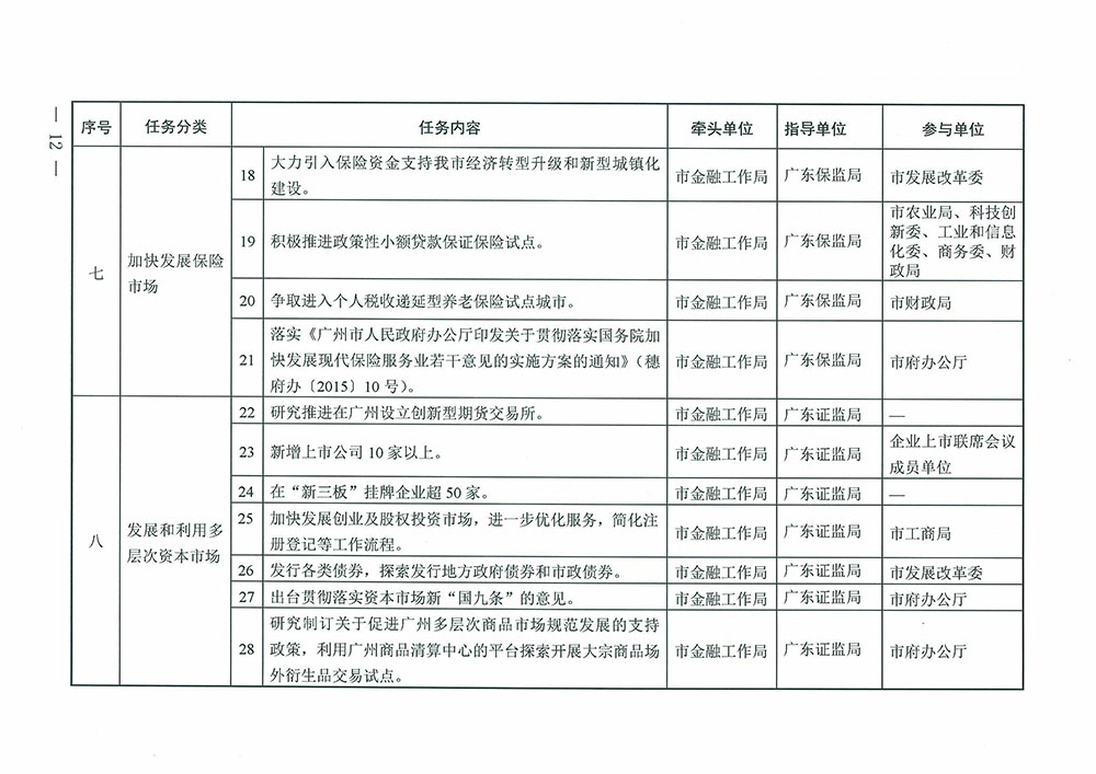 廣州市人民政府辦公廳關于印發2015年廣州金融創新發展重點工作實施方案的通知